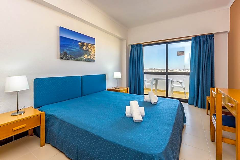 Each is decorated with wooden furniture and blue fabrics and have a private bathroom.